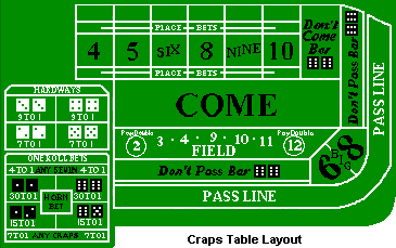 The shooter must first make either a "Pass" or "Don't Pass" bet (explained below). He then throws the dice. This initial throw is known as the come out throw. If he throws a total of 7 or 11 this is known as a natural and any player who made a Pass bet immediately wins. If he throws a total of 2, 3 or 12. this is known as craps and any player who made a Pass bet immediately loses. Any other total thrown is known as the player's point and he continues to throw the dice until he either throws his point again or he throws a 7. If he throws his point first this is known as making the points and any player who made a Pass bet, wins. If he throws a 7 first this is known as a seven out and any player who made a Pass bet, loses. If the shooter throws a winning combination for a Pass bet, the dice are said to pass. If the shooter throws a losing combination, the dice are said to miss. So if you place your chips on the Pass Line betting space before the come out roll, you win with a 7 or 11 on the come out throw or if the shooter makes his point. Winning players who make a Pass bet receive their wager back with an equal amount from the casino (odds of 1 to 1 or evens). The House edge against you on this bet is 1.414%. Not bad odds in a casino. The Pass bet is the most commonly used bet on the table and is played by just about everybody. You could play this bet frequently and blend in with the play. You don't have to bet with the shooter, you could bet against the dice passing. The Don't Pass betting space allows for this and you will have a House edge of 1.402%. Players who make a Don't Pass bet are also paid at odds of 1 to 1 or evens. Note, on the layout that the Don't Pass bet bars 6-6. This is because betting against the shooter would give a player the edge. Remember, the odds of winning are slightly against the shooter. Bar 6-6 means that should the shooter throw a 6-6 the Don't Pass bet is undecided. It neither wins or loses and the player who made the bet may withdraw it or leave it to be decided by subsequent throws. Some tables bar 1-1 instead. There are greedy casinos who will bar a 1-2 . There are two ways to make this (1-2 and 2-1) and this doesn't double the percentage, it more than triples the house edge. Barring gives the casino or House the edge on Don't Pass/Don't Come bets. The casino's edge on a table that bars 1-2 is 4.40%. Once a natural, craps, a seven, or the point is thrown, a new round is played, as before, beginning with a new come out throw. If the shooter sevens out, the dice pass to the next player, who becomes the new shooter.
