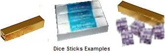 Used dice may be bought as souvenirs from many casinos although some refuse to let them go. When a die is taken out of play it will be cancelled. It could be that a hole is drilled through it or a crescent or circle is pressed into one side with a vice. Sometimes a gold bar is hot stamped on the six-spot. A sharp pointed metal scribe is often used to press a small shallow mark into a face. Some older dice were scratched or had a date or initials marked on them. By state law Atlantic City casinos must drill all the way through their used dice. If you want true perfect dice then pay the extra for a stick. A stick is a number of dice that are still in their sealed pack as delivered by the manufacturer.