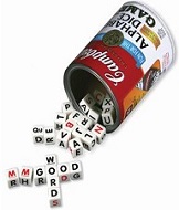 Campbells is a tinned soup manufacturer and they have used this aspect of their business in the theme for their dice word game, with rounds described as "servings", and their promotions describing it as "not just another alphabet game. It's M'mm M'mm GOOD.", and with its packaging designed to look like a soup can, etc. Released in 2011, the game is manufactured by TDC Games from the USA and it comes with 36 dice with letters of the alphabet marked on their faces (216 letters altogether). It's gameplay is a cross with many other anagram-making dice games, crosswords, and Scrabble.