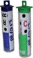 LCR is a dice game first published by George & Company LLC in 1992. The game package comes as a plastic tube containing three dice and a number of round chips ans is also available in a tin. It is really only a variation of the old standard ordinary dice game of Aces In The Pot. It is played by three or more players and is a game of luck involving only mechanical game play. Each dice is specially marked with the letters "L", "C", "R" and single small circular spots. The letters signify whether players pass chips to the left, right, or into the centre.