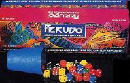 Perudo is a commercial version of the game of Dudo or Peruvian Liar Dice. It was allegedly taught to the Spanish conquistador Pizzaro by the Inca King Atahualpa in the 16th century. This is the dice game featured in the film The Pirates Of The Caribbean: Dead Man's Chest. Cosmo Fry (known for Fry's Cocoa) marketed the commercial version of the game, Perudo, in 1990 in the UK. It included real leather dice cups and a traditional Peruvian dice bag and was consequently not cheap to purchase. The game is just as easily played with your own ordinary standard dice and throwing cups or beakers to roll and conceal the dice.